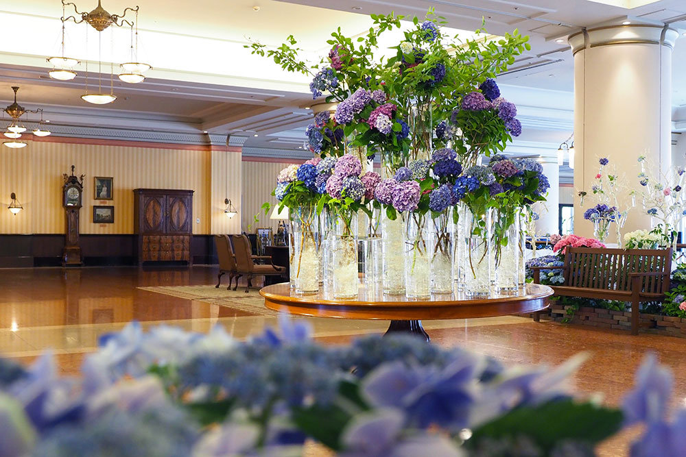 あじさいをはじめとした初夏の花で彩られ華やかなアート空間に。