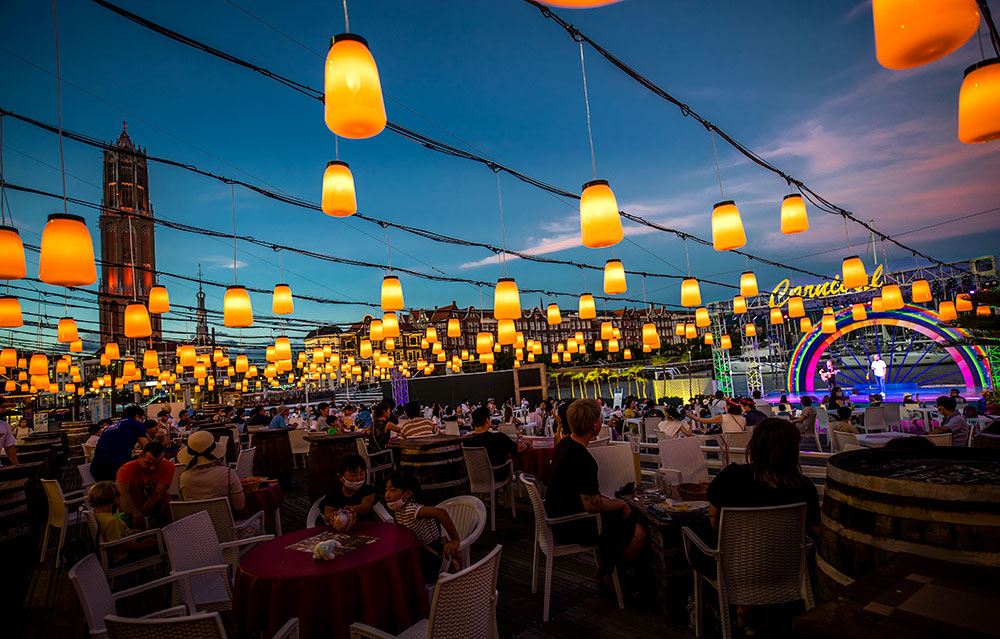 ハウステンボスのレストランシェフが監修・厳選したヨーロッパのグルメとお酒を楽しむ夏の夜。特設ステージでは音楽やダンスのショーが繰り広げられ、パーティー気分を盛り上げます。海風を感じながら仲間や家族と共に過ごす、忘れられないひとときを。
