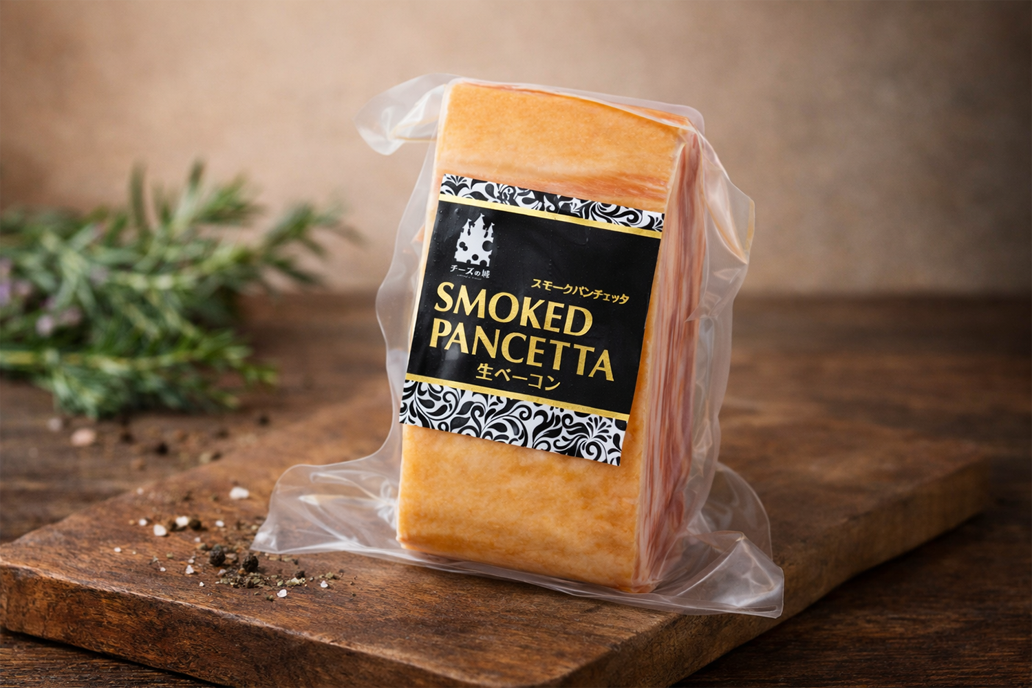 香ばしい燻製の香りと凝縮した旨みが楽しめるスモークパンチェッタ。ほどよい塩味とコク深い味わいで、そのままはもちろんパスタやサラダ、グリル料理にも最適。食卓をワンランク引き上げる、本格派の一品です。
