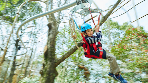 スリル満点で自然を満喫できる日本最大級のアドベンチャーパーク(冒険と挑戦の地)!