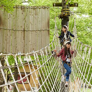 空中に張り巡らされた吊り橋やロープネットなど、様々なエレメント(障害物)を知恵と勇気で乗り越えるスリル満点のアスレチックアトラクション。高さ3mのチャレンジコースと6m・9mのエキスパートコースがあり、子どもたちはもちろん、大人も本気になって楽しめます。