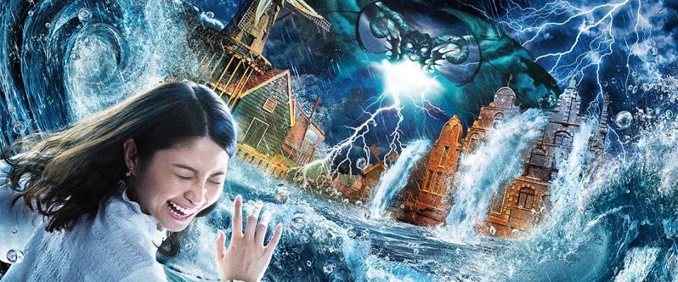 実際にオランダで発生した大洪水の猛威を体験することができる、大迫力の体感シアター。特殊装置を駆使して霧や稲妻、波、豪雨、竜巻が発生し、800トンもの本物の水が客席をのみこみます。