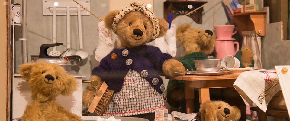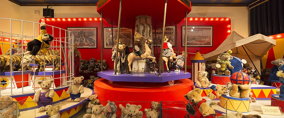 「テディベアの博物館」として、世界中のメーカーベアやアーティストベアを多数展示。ドイツ・シュタイフ社製はもちろん、希少価値の高い作品も数多く並びます。座高3.6mのジャイアントベアはフォトスポットとしても大人気。愛くるしい表情に、きっと心癒されます。