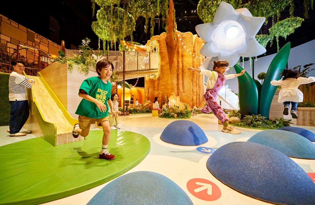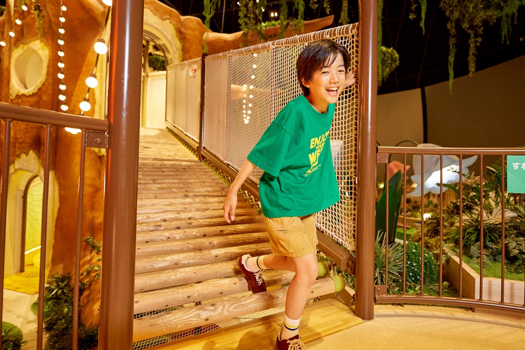 巨大な森の中にロープネットやボールブランコ、トランポリンに滑り台など、たくさんの遊具が集まるキッズ向け屋内アスレチック施設。足を踏み入れた瞬間からまるで絵本のような世界が広がり、こびと気分で遊べます。乳幼児向けのエリアもあるので、小さいお子さまにも安心です。