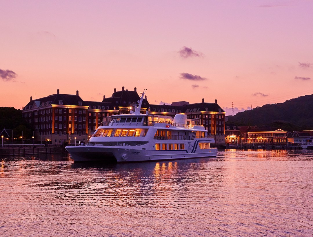 ヨーロッパの街並みと穏やかな大村湾を舞台に、美しい料理とクルーズを楽しむ優雅なひととき。
