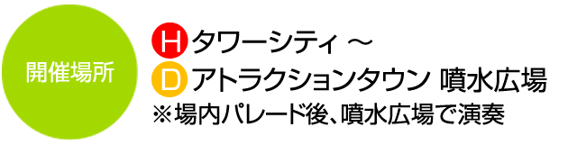 | 8/13(土) 【パレード】13:50~ 【噴水広場での演奏】14:00~ |