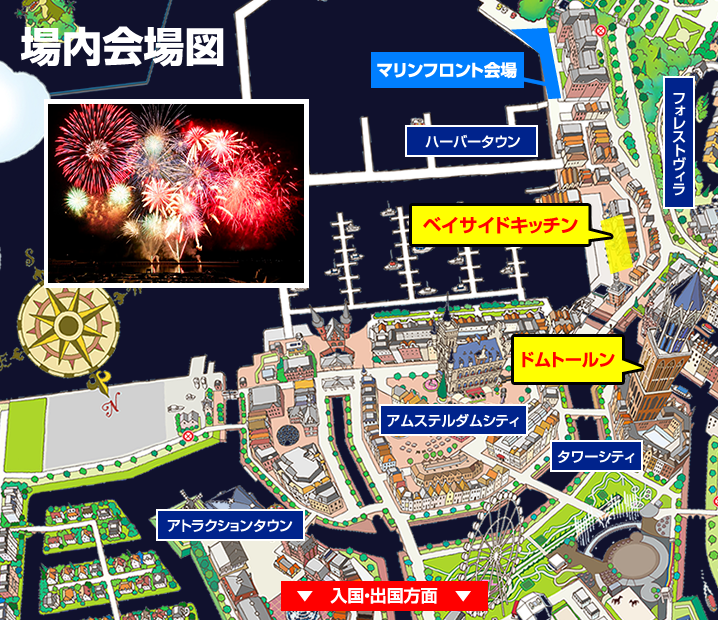 花火×日本最大の音楽噴水ショーが楽しめるエリアも