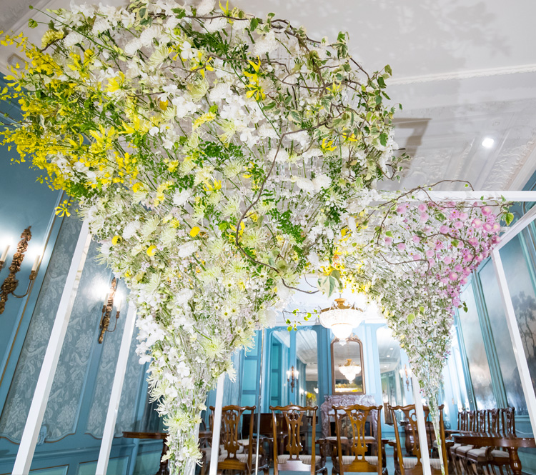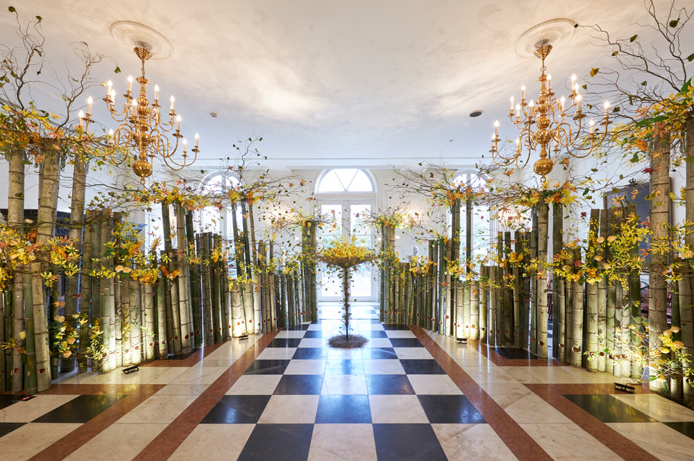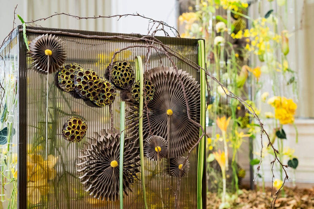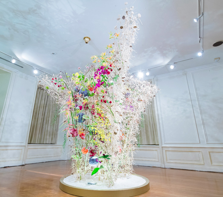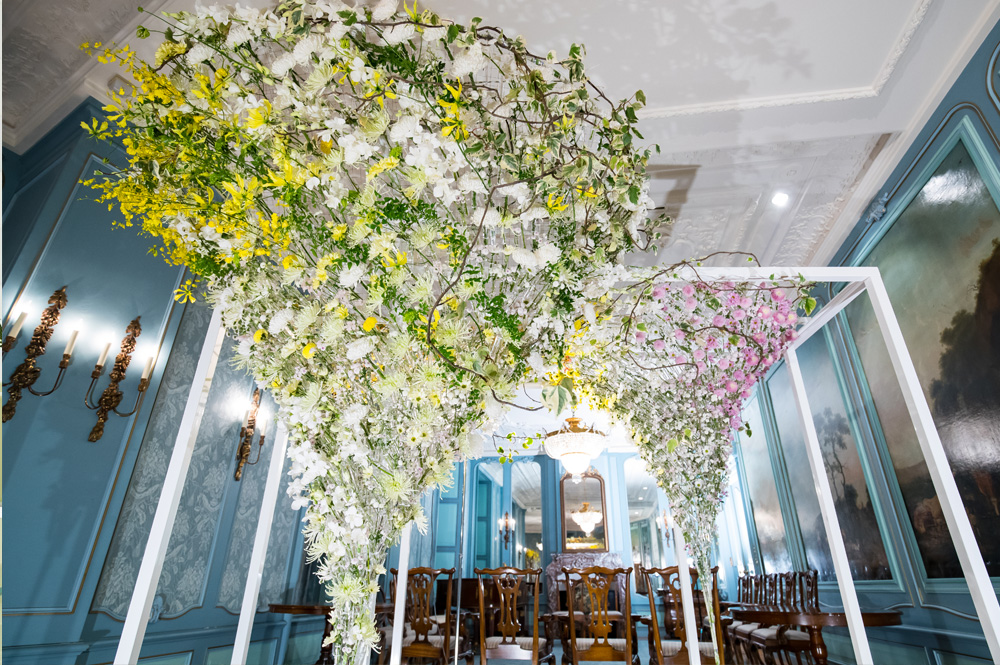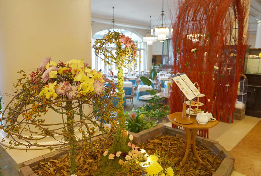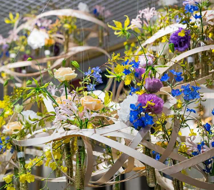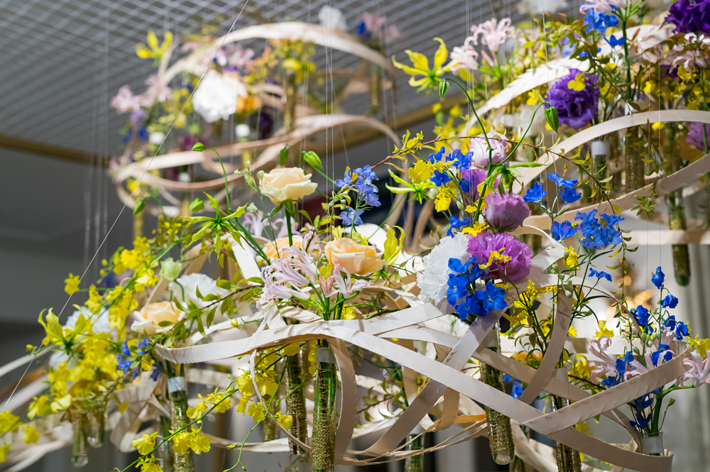 壮大なフラワーアート。窓から差し込む光との調和など、