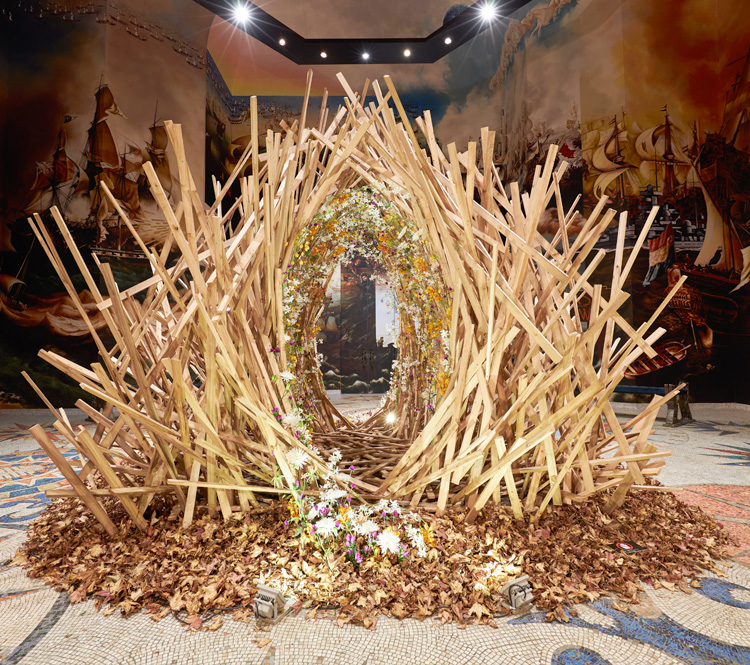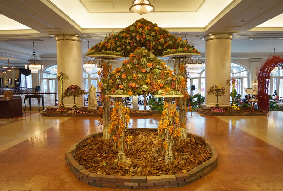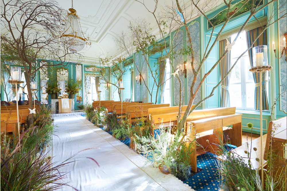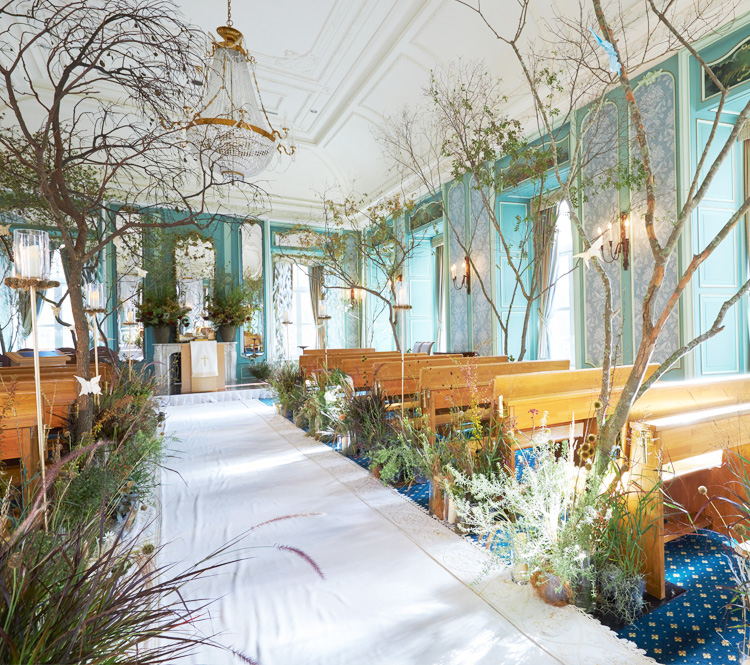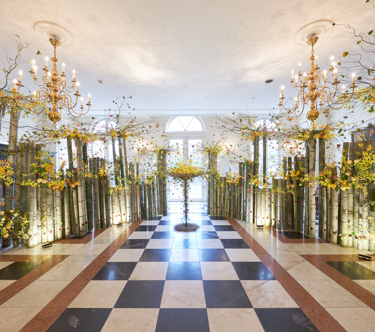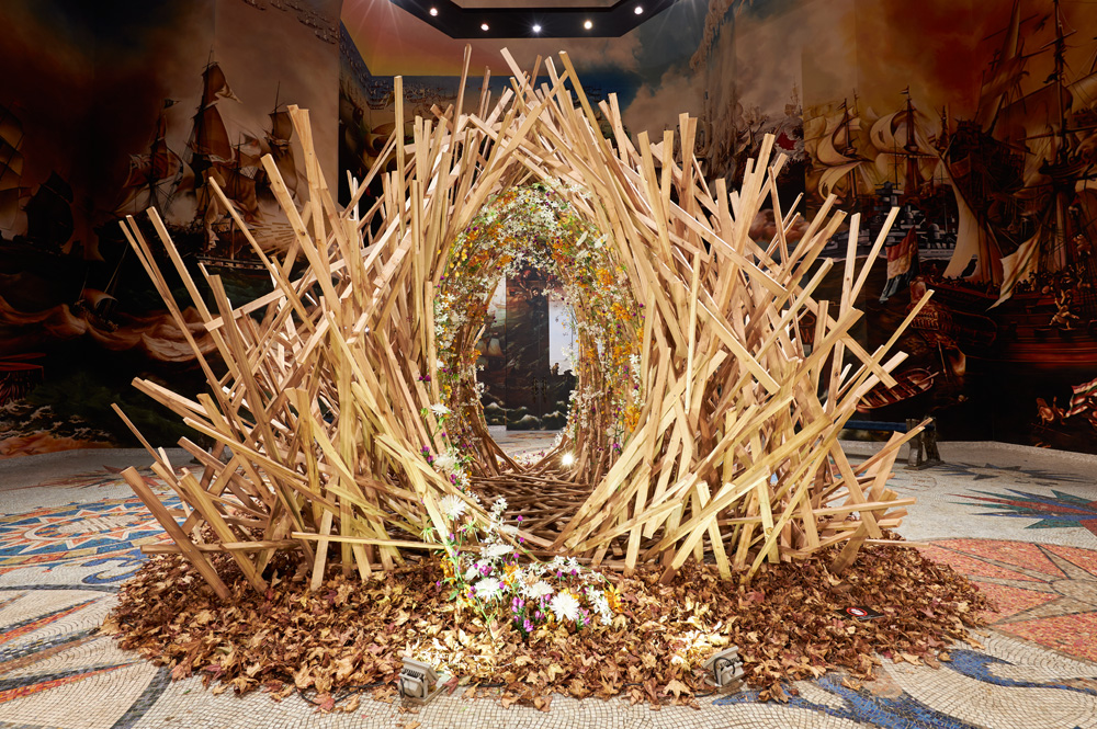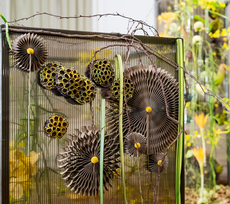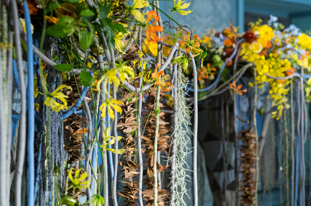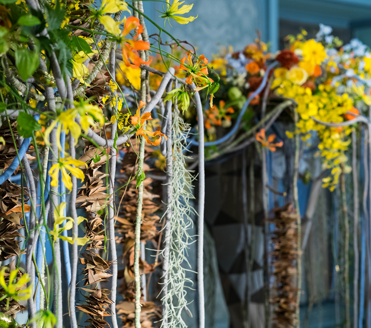 壮大なフラワーアート。窓から差し込む光との調和など、