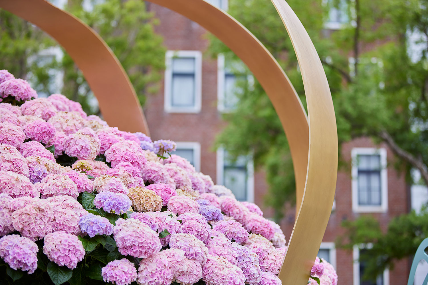 あじさいをはじめとした初夏の花で彩られ華やかなアート空間に。
