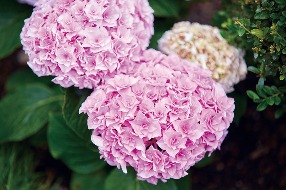 ガクがバラの形に似て咲く「八重ボール咲き」でピンク色の可愛らしいオリジナル品種「ハウステンボス」を見ることができます。
