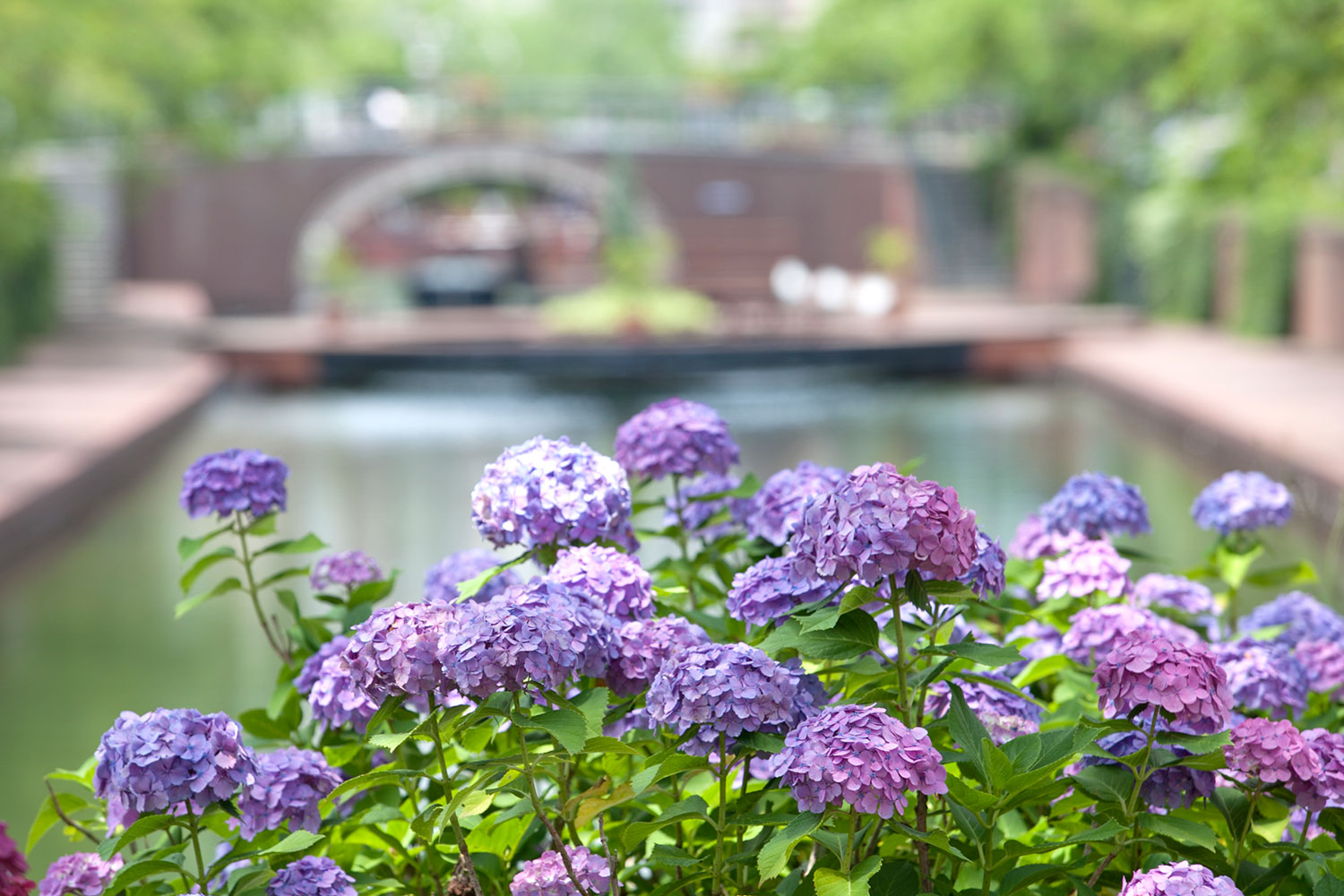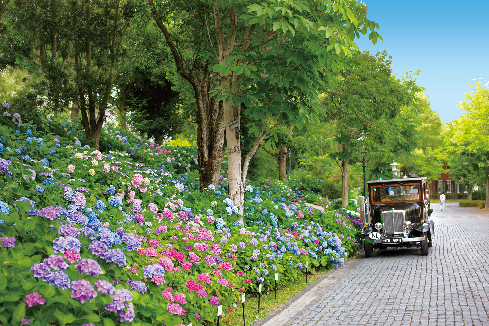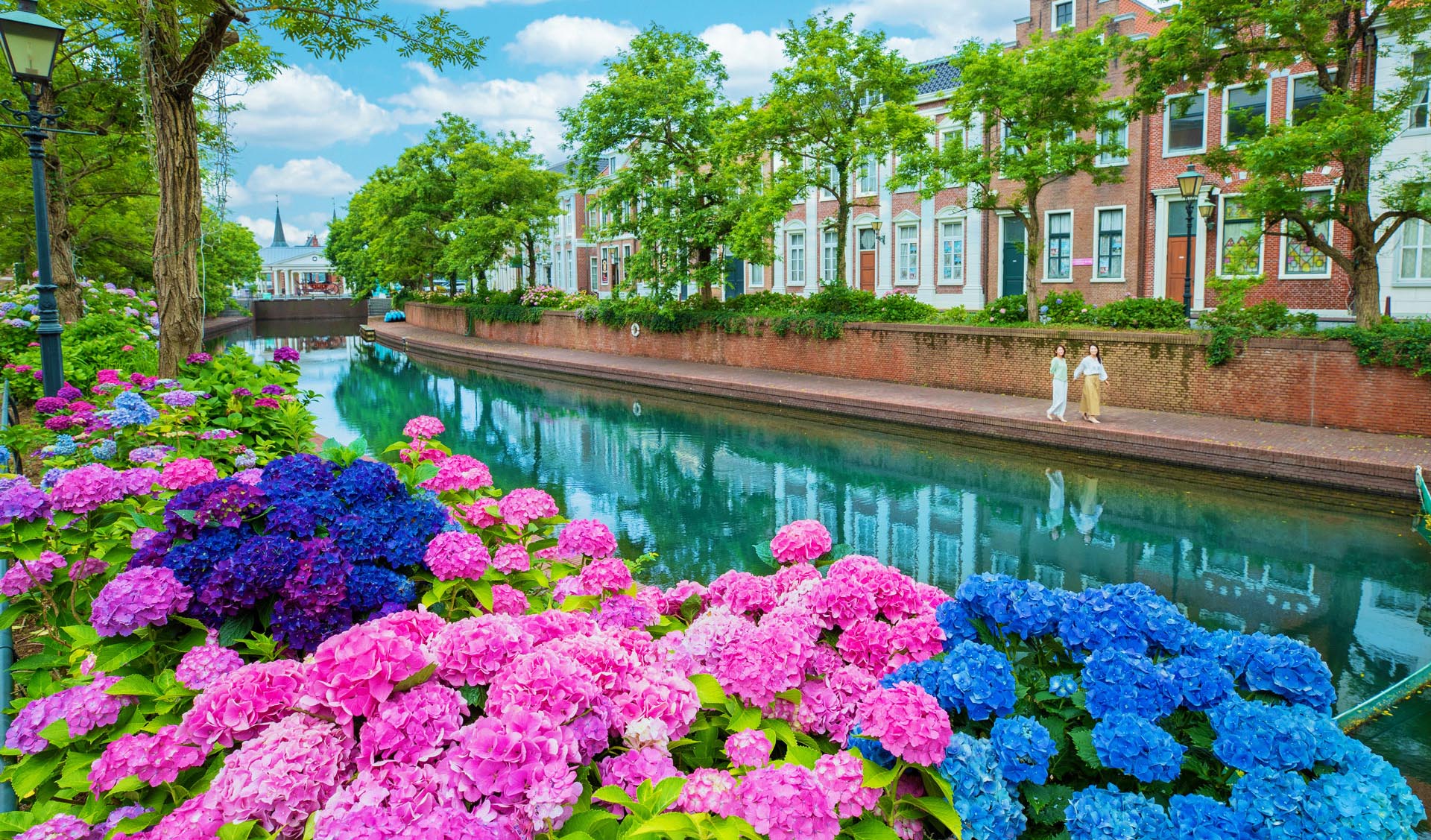 西洋の街並みとあじさいを映し出す運河を散策すれば、日本にいることを忘れてしまうかのような幻想的な光景を楽しめます。