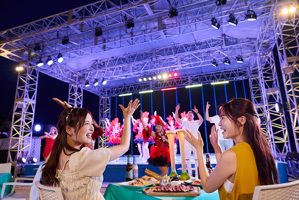 大迫力の花火を間近で楽しみながら、美味しい料理と華やかなショーに酔いしれる、特別な夏の夜をお過ごしください。