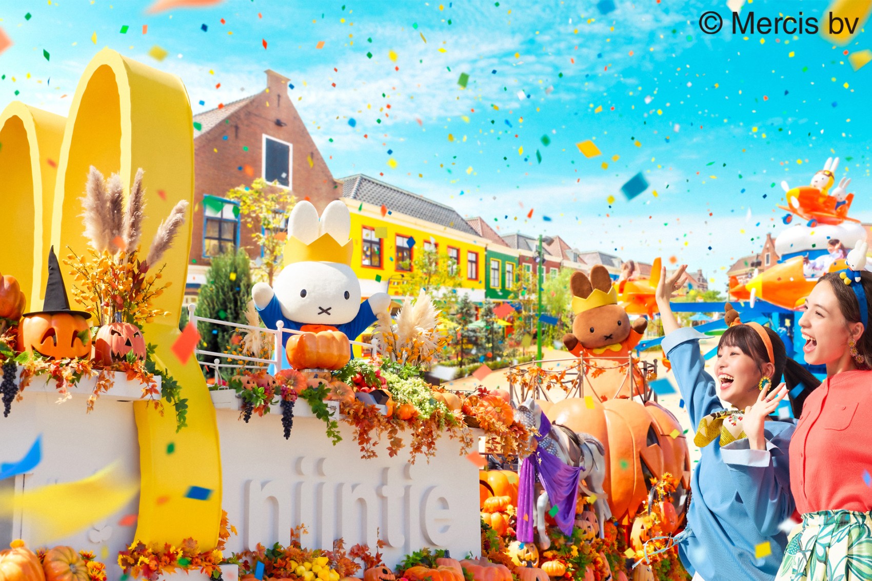 王冠を被ったミッフィーとメラニーが、キャンディやかぼちゃで彩られた新フロートに乗ってハウステンボスをパレード。アムステルダム広場では、ミッフィーデザインのキャンディがもらえる「トリックオアトリートタイム」も。