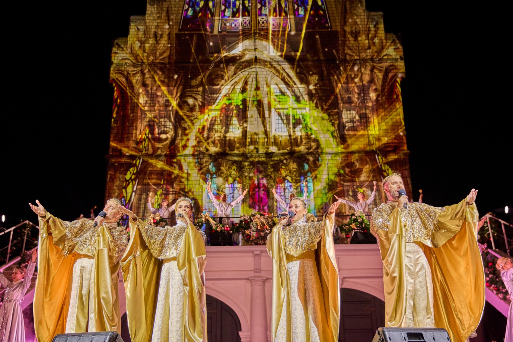 聖歌隊の美しくも力強い歌声と広場を埋め尽くす無数の輝きに圧倒されるクリスマスナイトの一大イベント。圧巻の歌声の中、シャンデリアツリーに光が駆け巡り、一斉に点灯する瞬間は必見。会場全体が感動と興奮に包まれます。
