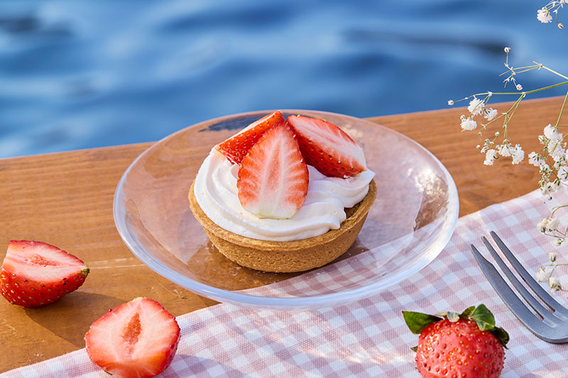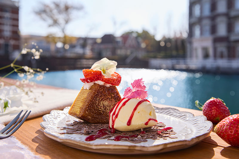 マルシェで人気のバームクーヘン(ハウステンボスオリジナル)と長崎県産イチゴのコラボメニュー