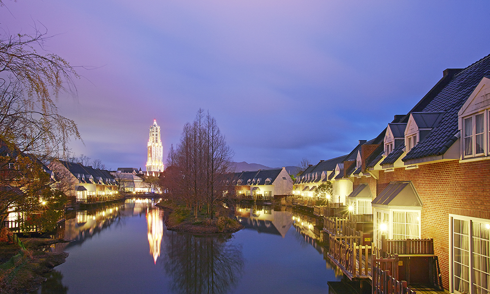 ハウステンボスの中心に位置し、どこに行くにも便利。全室45㎡以上で家族みんなで泊まっても広々。パークのイルミネーションをお部屋から楽しめる客室も魅力の1つ。