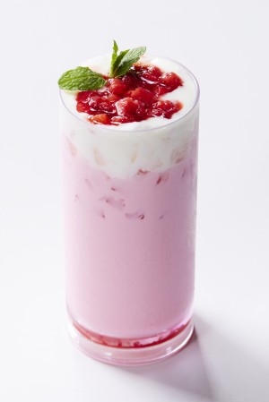 ストロベリー&ミルク 店内人気No.1。 お子様にも飲みやすい、甘めのドリンクです。 【アレルギー:乳】