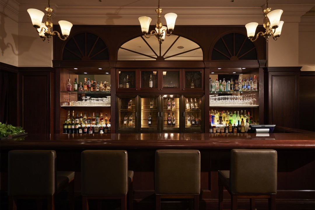 上品で重厚な木目のインテリアとシックであたたかなくつろぎのバー。 行き届いたサービスでゆったりとした時間をお過ごしください。