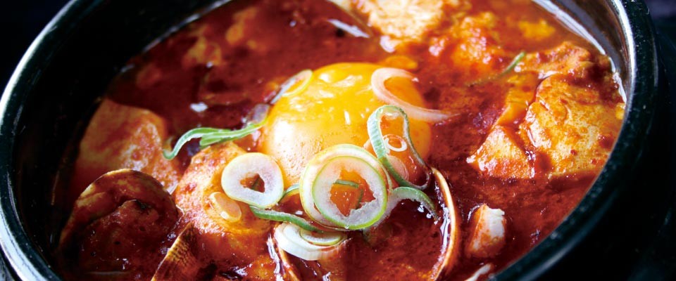「辛いけど優しい味」と評判の韓国家庭料理の専門店。石焼ビビンバやプルコギ、チャプチェ、トッポギなど、オモニ(母親)の味を存分にお楽しみいただけます。あさりのダシと唐辛子の辛みがマッチしたふわとろ豆腐の鍋・スンドゥブチゲは、不動の人気ナンバーワンメニューです。