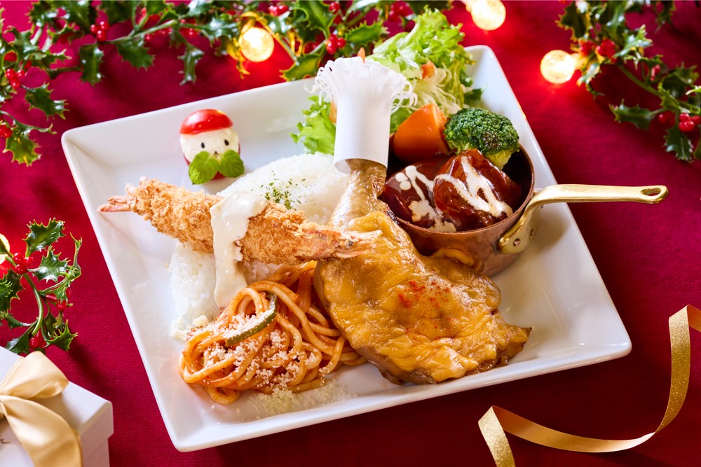 チキン・ビーフシチュー・エビフライなど、クリスマスにぴったりなごちそうをワンプレートに。 ミニサンタがおすすめする特別なトルコライスです。 価格:2,500円