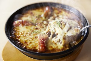 ハッシュドビーフと2種類のチーズをのせて焼き上げた定番のドリア。