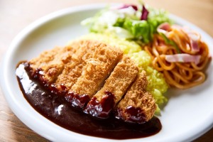 とんかつ・ターメリックライス・ナポリタンを盛り合わせたThe トルコライス。