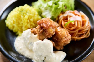 自家製タレに漬け込んだチキンはタルタルソースと相性バッチリ。