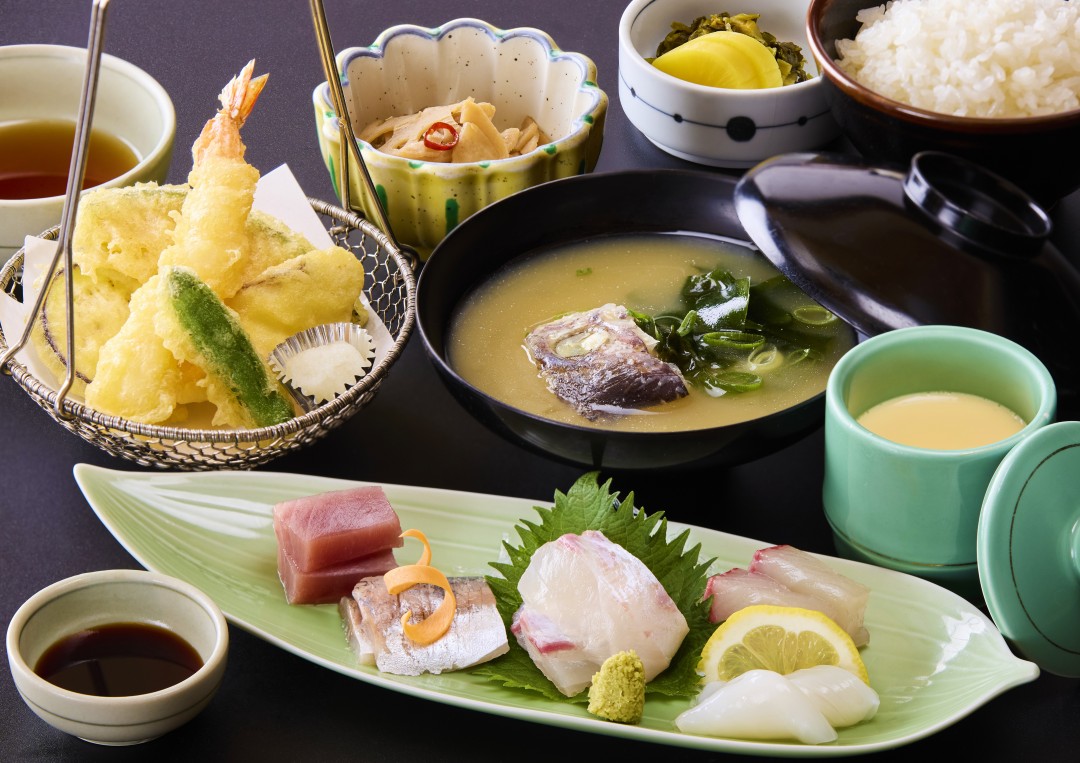 地元・長崎の旬の食材を使用した御膳料理を提供する和食処。 昼のおすすめは、地元西海産豚肉を使用し、2種のパン粉で包んで揚げた「豚カツ」夜のおすすめは、一膳で四通りの美味しさを楽しめる「長崎和牛三昧膳」と「長崎真鯛茶漬け御膳」。どちらもここでしか味わうことができない逸品です。お刺身やすき焼きをご堪能いただけるメニューもご用意しています。