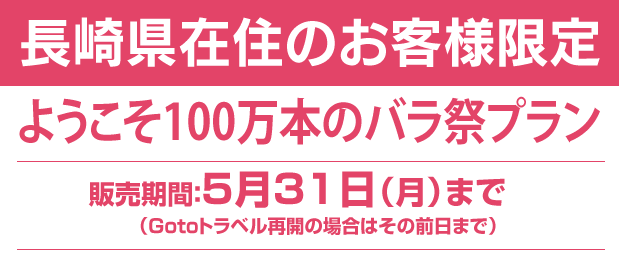 新型コロナウイルス感染症の感染拡大に伴い、長崎県民対象の「ふるさとで“心呼吸”の旅キャンペーン」を4月23日(金)チェックインから一旦停止いたしております。