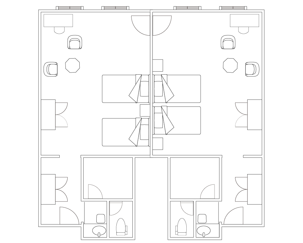 通常はツインルーム2室が繋がったお部屋となりますが、
