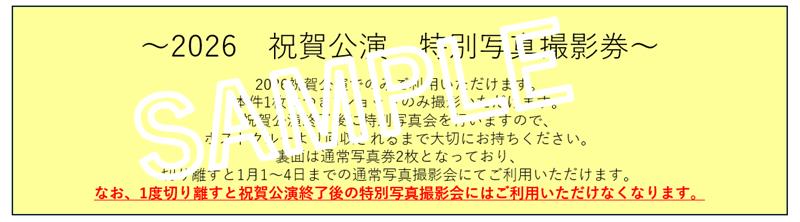 *特別写真撮影券についてはご自身で半分に切り取り、通常写真撮影券2枚としてもご利用いただけます。但し、撮影券を切り取った時点で特別写真撮影券として無効となります。