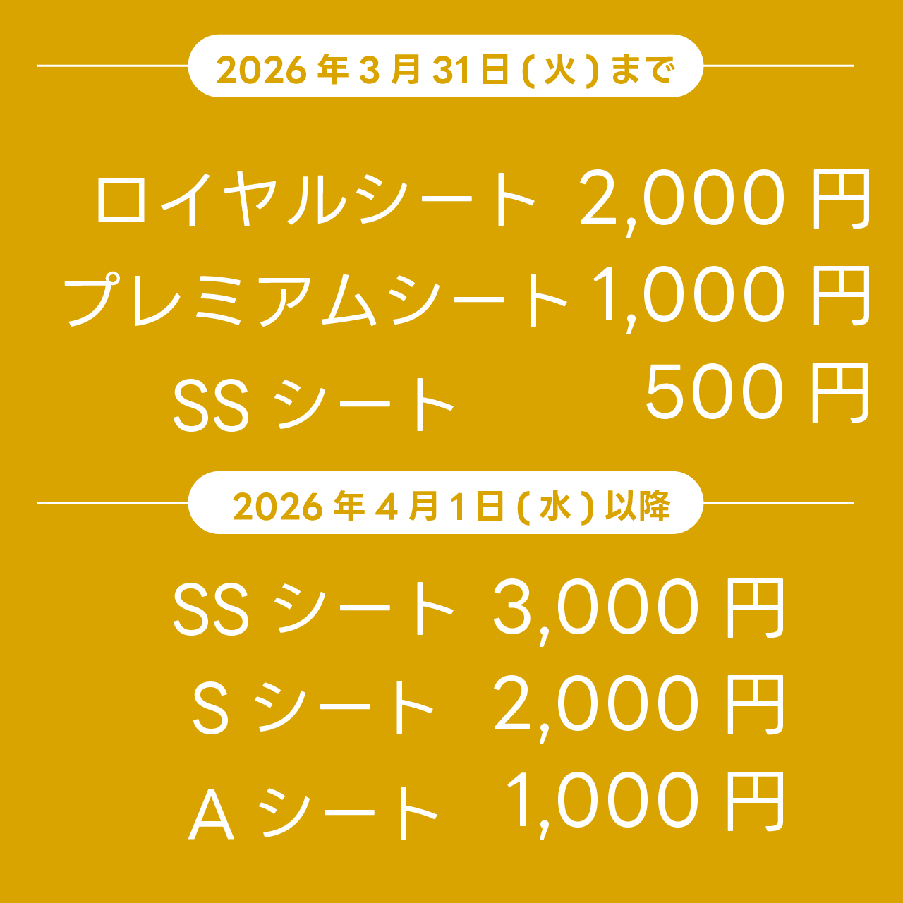 *チケット発売後に出演者が変更になる場合がございますが、ご購入済みチケットのキャンセル・返金等はお受けいたしかねます。予めご了承ください。