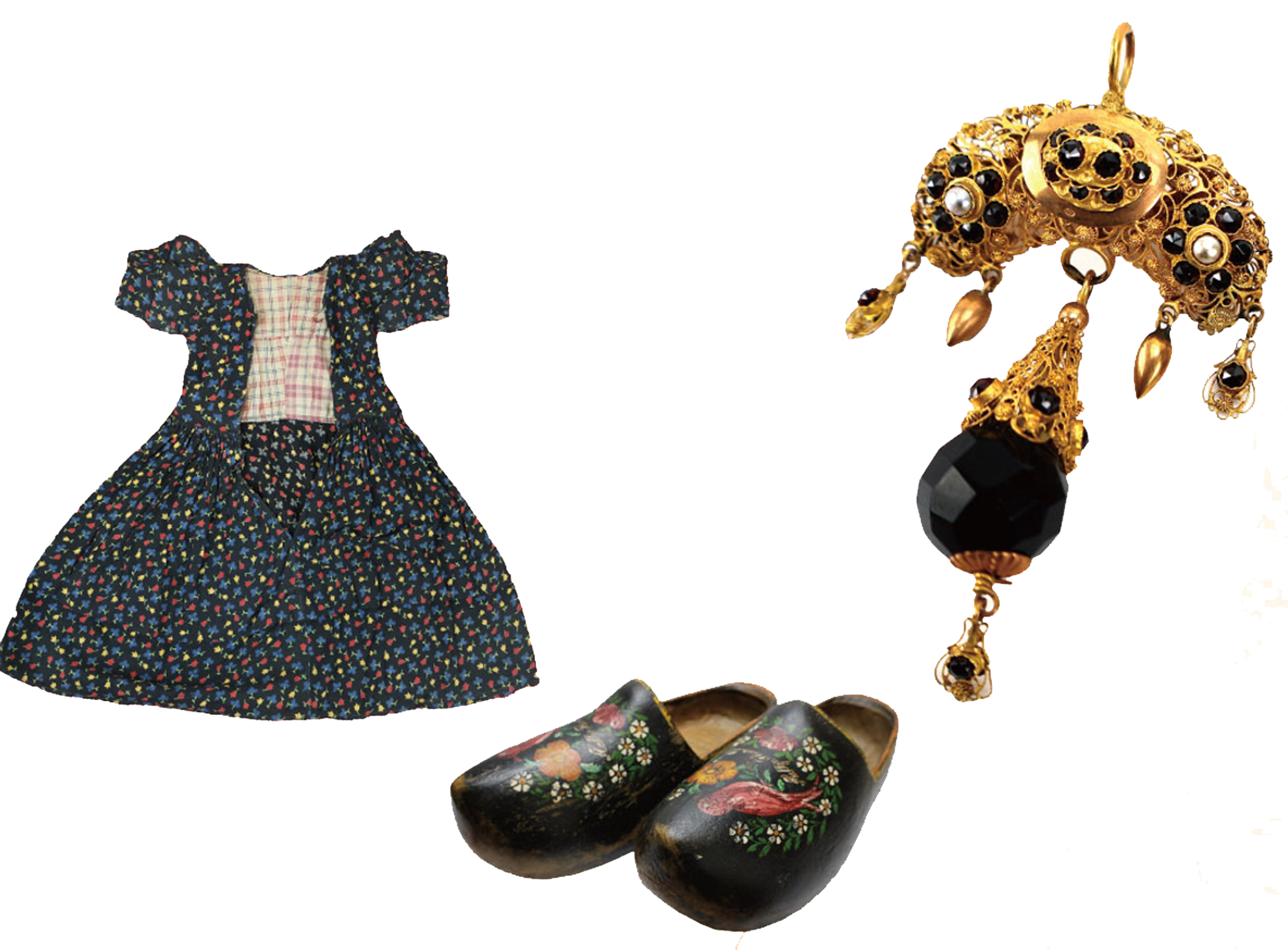 ハウステンボスには19世紀当時のオランダ民俗衣装やアクセサリー、民具等の民俗資料が約3000点収蔵されており、その一部をご紹介いたします。