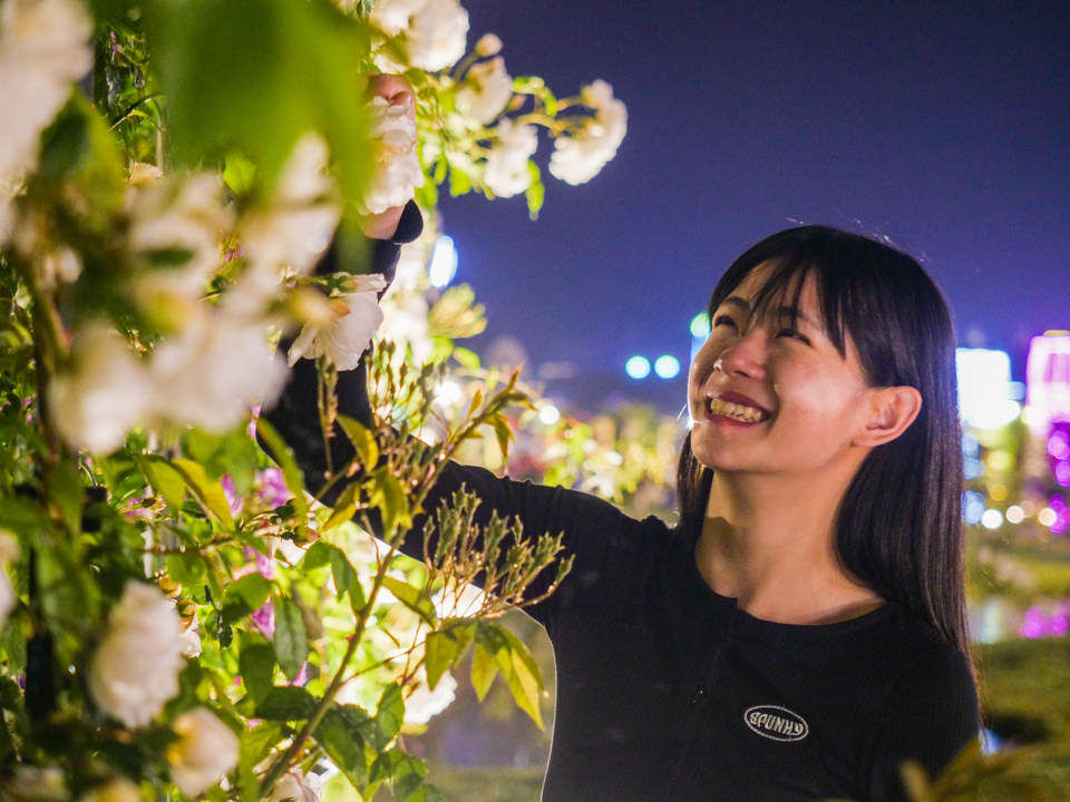 かつてこれほどまでにロマンチックな夜散歩があったでしょうか…!2000品種100万本ものバラが見頃を迎える『アジア最大級バラ祭』では、『ナイトローズ』と称し、ナイトタイムもライトアップしてゲストをお出迎え。幅66mもの『光の滝』へと続くバラの花道に立つと、そこにあるのは、夢の中のような恍惚感。辺り一帯には壮麗な讃美歌が流れ、思わず”ここが天国ですか?”と疑いたくなるほどです。「バラってこんなに種類があったんだ!」。出逢ったことのない絶景に、母娘3人もただただ感動中。夜にぼうっと浮かび上がるバラは、妖艶だったり、可憐だったり。デイタイムと異なるバラの表情に出逢えるのも、『ナイトローズ』ならではの魅力です。