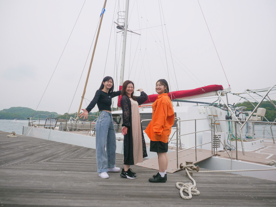 今回乗船した『99TRITON』は、2021年6月6日に就航するクルーズ船。既存のヨットセーリングと異なり、双胴船ならではの安定した特徴を活かして、食事の提供も可能になったそう。選べる食事は、寿司とイタリアンの2種類。それぞれランチとディナーの選択肢に加え、スイーツ付きクルーズや通常便、サンセットクルーズもあるので、一度公式サイトをチェックしてみてはいかが?ちなみに、今回3人が頂いたコースは「イタリアンランチ付クルーズ」¥11,000(税込)。自然に囲まれたロケーションと定員8名の少人数制は、”人の多い高級レストランは緊張しちゃう…”なんて方にもオススメです。