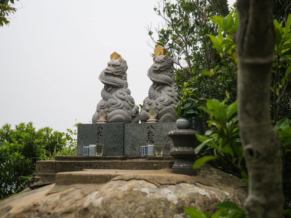 旅もいよいよ終盤。母娘3人が続いて訪れたのは、”島全体がパワースポット”と評される『淡島神社』。『淡島神社』といえば和歌山県の総本山が”女性にご利益がある”として有名ですが、こちらもご多分に漏れず、女性に霊験あらたかな神社のひとつ。子宝や婦人病平癒の願いを聞いてくださるそう。さらに、拝殿前のミニ鳥居を3回くぐると願い事が叶うのだとか!?妹ちゃんは、難なくするりと、くぐりぬけに成功しちゃいました!「楽勝じゃん!(笑)」。こじんまりとした境内に笑い声が響いて、なんだか心地よいひとときです。のどかなこの雰囲気を満喫したくて、龍神橋を渡った先にある八大龍王の祠にも参拝することに。小高い島のてっぺんには、2体の龍神様が鎮座していました。まるで海と人の営みを見守ってくれているみたい。