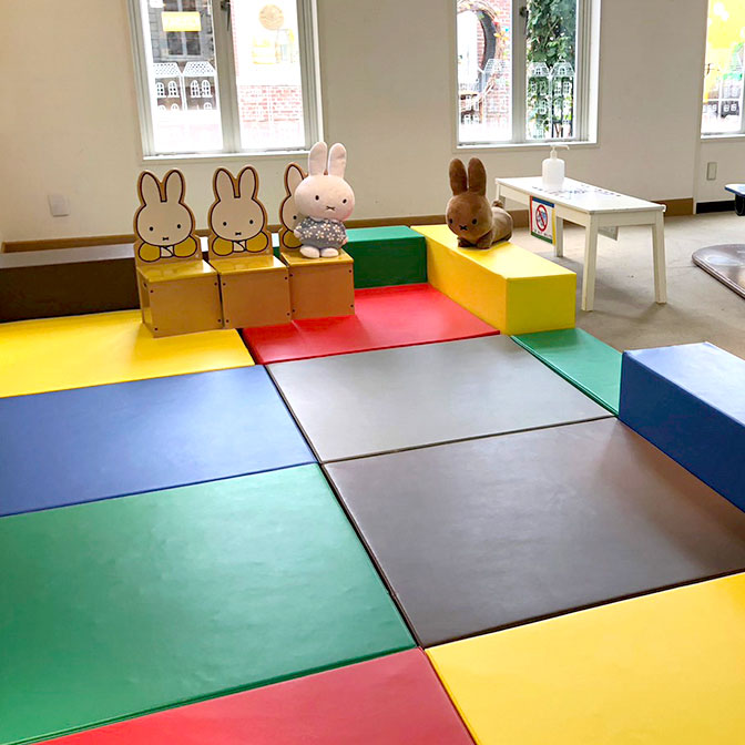 フラワーパサージュは屋内施設なので、天気を気にせずお花を楽しむことができます。自動販売機とベンチやテーブル、ちょっとしたキッズスペースもあるので、花のアートを楽しみながら休憩できるのも助かる♪