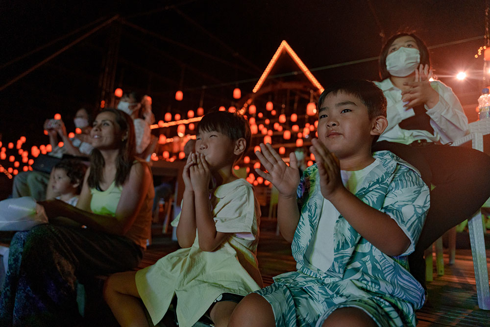 世界初!水上で夜空に舞うランタンとプロジェクションマッピング