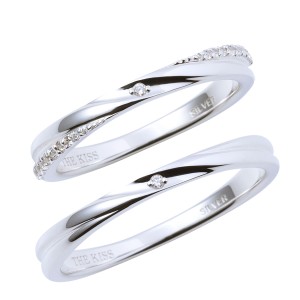 ふたつのラインが交差し、ふたりの出会いを表現した「クロッシング」シリーズのペアリング。中央には、”ふたりの愛情がずっと続きますように”との願いを込め、「永遠」の意味を持つダイヤモンドをセットしています。