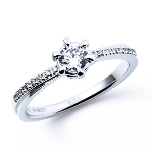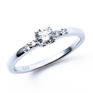 ダイヤモンドを包み込んでいる爪部分にもさりげなくダイヤモンドを留め、どこから見ても指元を華やかに演出してくれます。