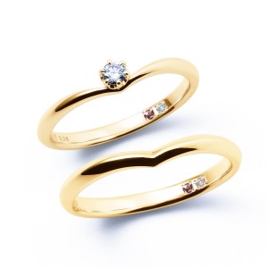 レディースは中央に5石のダイヤモンドをあしらいより可愛らしく、メンズはシンプルなデザインに仕上げました。