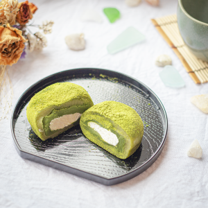 そのぎ茶を練りこんだ餅の中には “そのぎ茶餡” と “生クリーム” がたっぷり! お茶とくじらの町東彼杵【道の駅 彼杵の荘】オリジナルの大福です♪