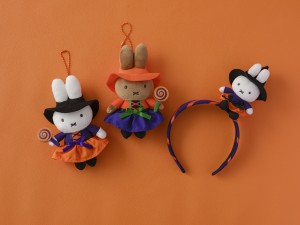 ハロウィン限定で、魔女をイメージした帽子とドレスをまとった特別なミッフィーとメラニーが登場。ぐるぐる模様のキャンディを手にした姿がとってもかわいい。 ぬいぐるみカチューシャ:2,400円 マスコットキーチェーン各種:2,600円 ※マスコットキーチェーンは販売終了